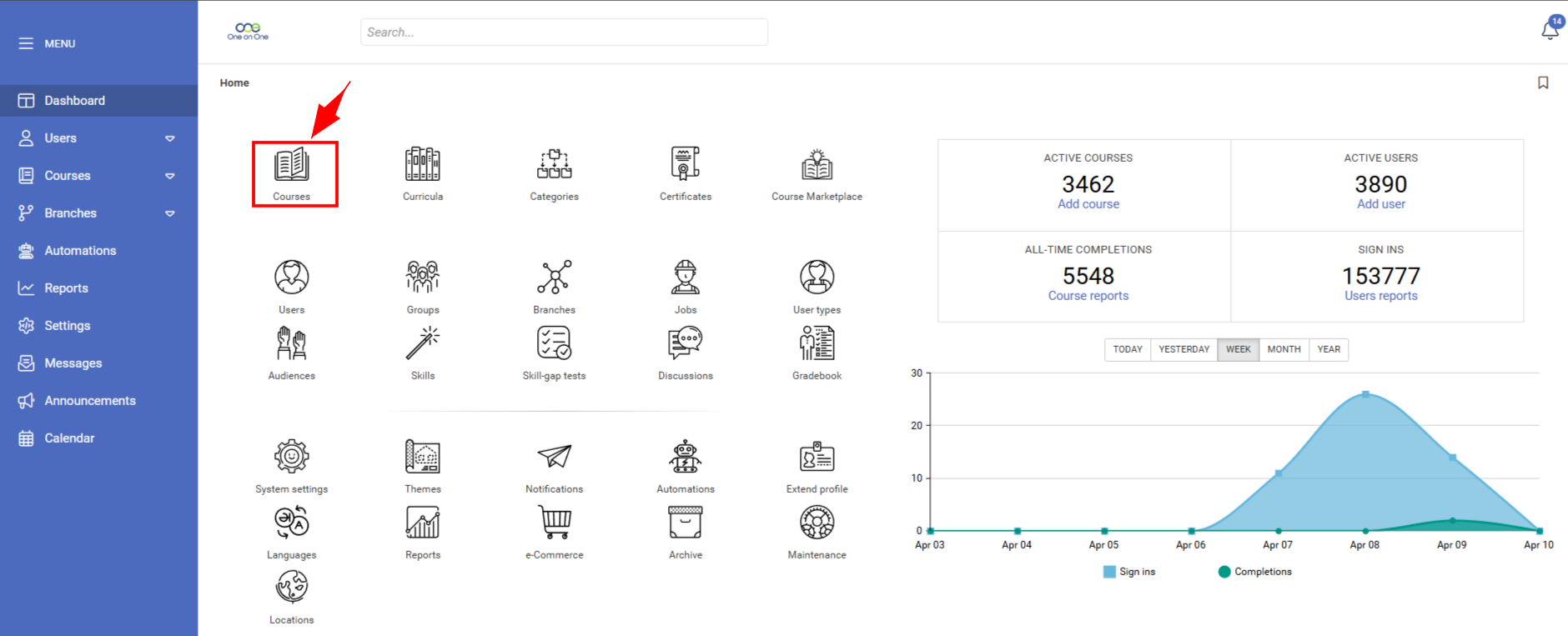 Step 1: Click on the 'courses' option from the instructor or admin dashboard.